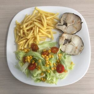 Plato Combinado de Merluza a la Plancha, Ensalada y Patatas Fritas