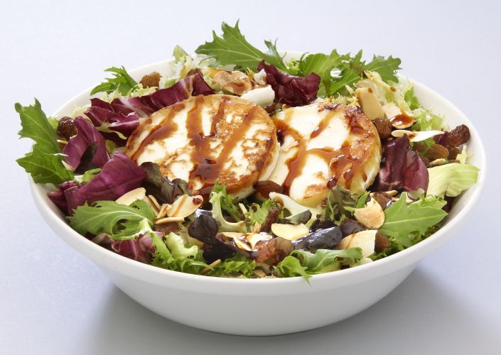 Lechuga, tomate, frutos secos, rulo de queso de cabra y vinagre balsámico de módena.